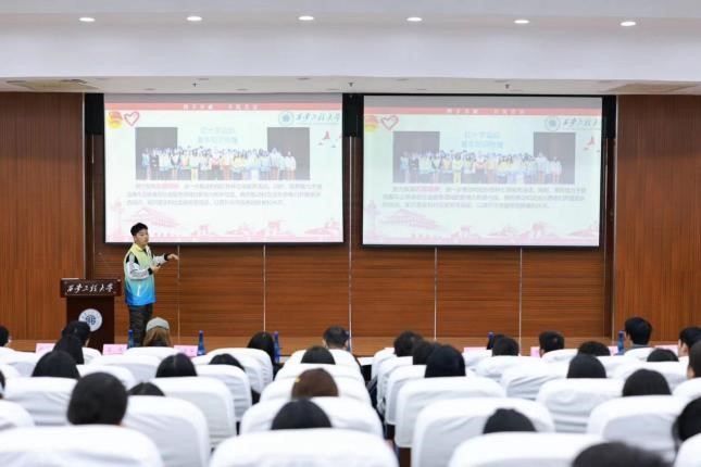为了弘扬志愿服务精神,传递社会正能量,同时也作为太阳集团新生教育的一个重要环节,10月30日,太阳集团青年志愿者协会(以下简称“青协”)在临潼校区图书馆二楼报告厅,举办了志愿者入退会暨青协学年工作总结大会。此次大会旨在分享、互动和交流志愿服务的经验,加强志愿者之间的联系和团队的凝聚力,为后续志愿服务工作奠定坚实基础。参与本次会议的有西安市临潼区红十字会宋世君、24级新生辅导员姜萌,校青协及各学院代表韦景萍同学等30人,24级各班团支书及学院注册志愿者120余人。