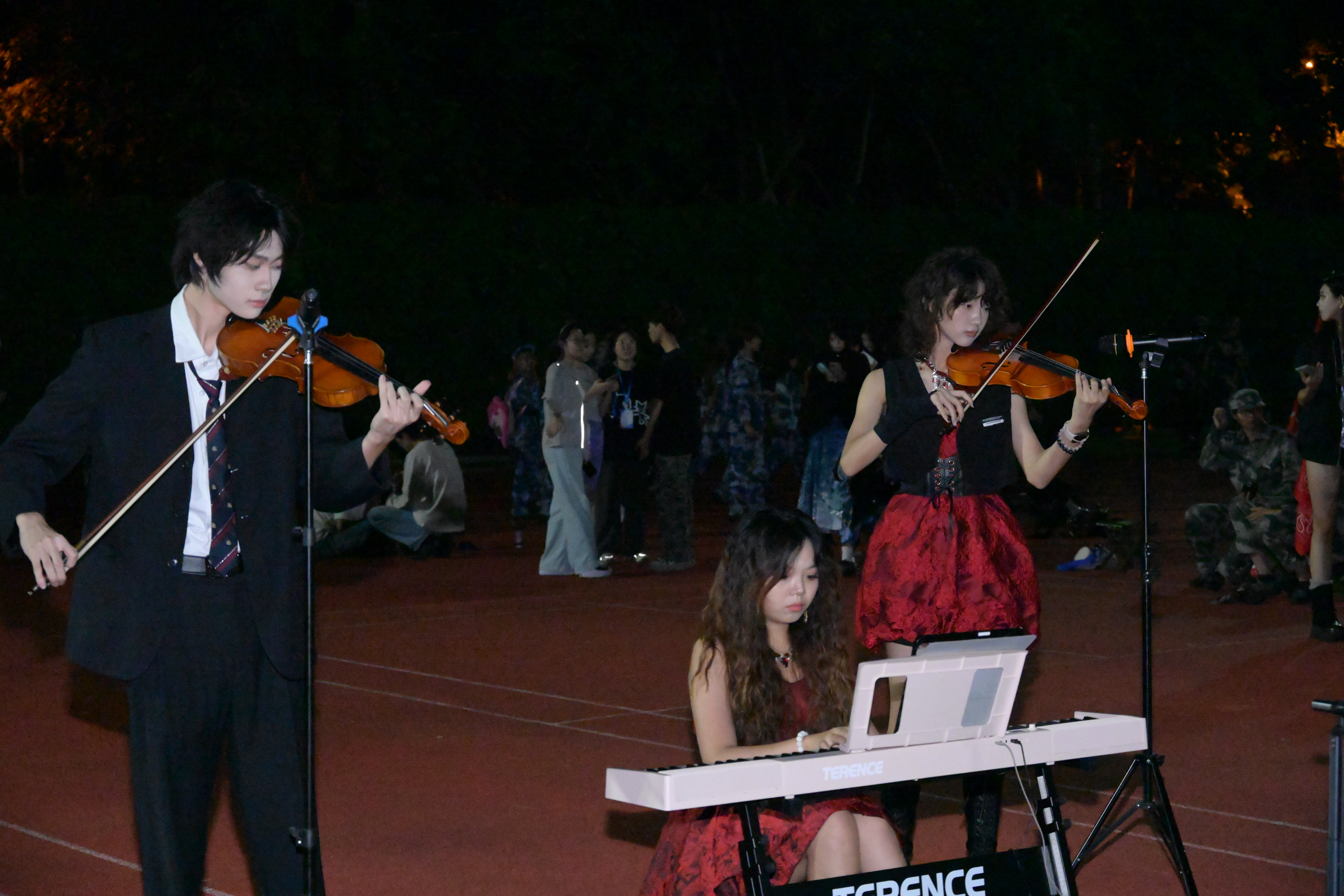 此次军训慰问演出以“双校区联动,暖萌新之心”为宗旨,在金花与临潼校区分别打造出充满活力与温情的演出现场。活动节目形式多元且丰富:既有艺术团与学生会文艺部同学精心编排的当代舞蹈,舒展动作将校园生活的激情展现得淋漓尽致;也有小提琴与钢琴的和谐协奏,琴音间的绝佳默契与美妙乐章收获满堂喝彩;更有大一新生勇敢登台,以清亮的歌声或灵动的舞姿,展现出新生的朝气与对校园的憧憬;高年级学长学姐的演唱旋律轻快,瞬间点燃现场气氛,掌声与欢呼声此起彼伏……