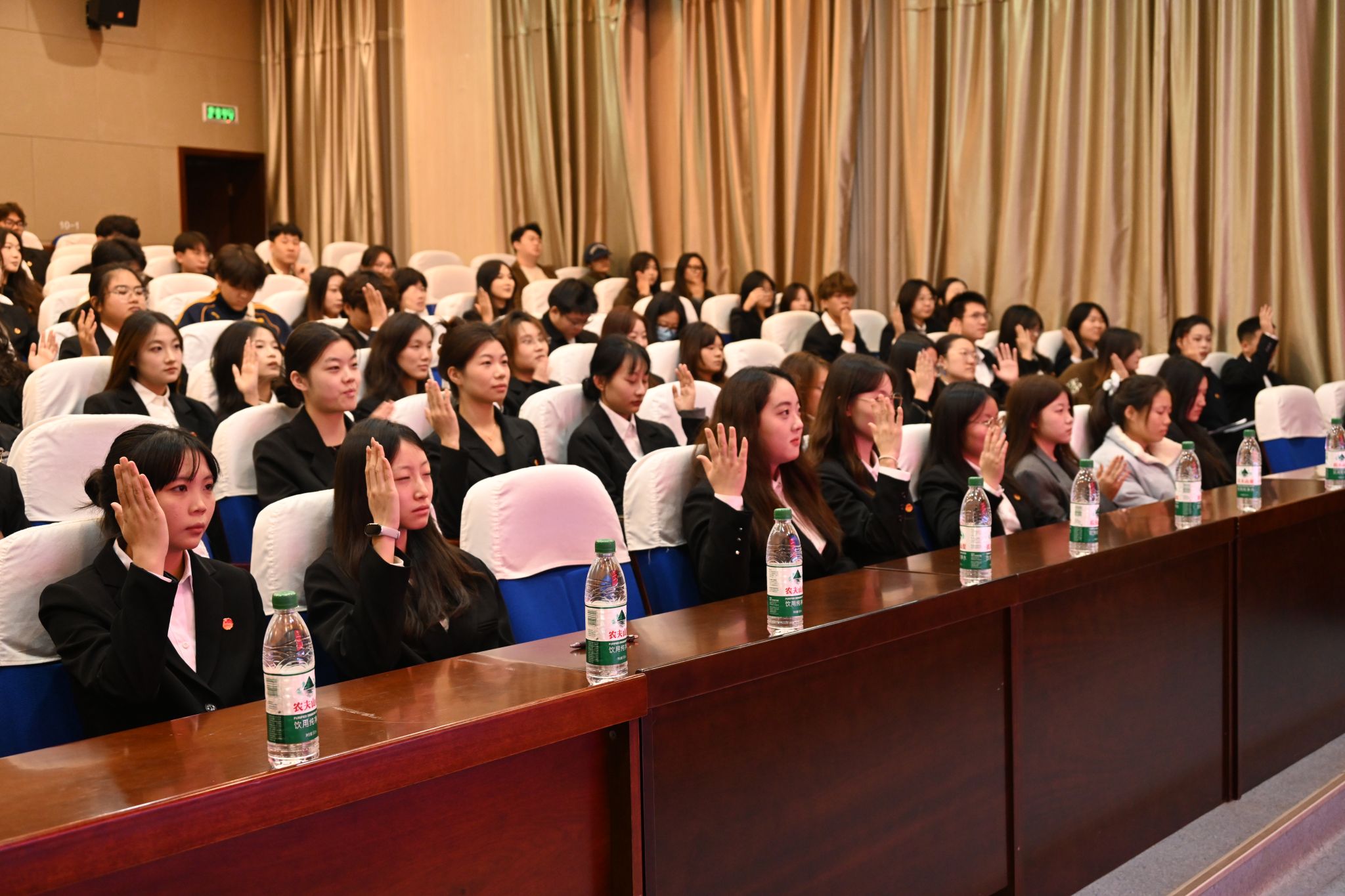 大会最后,新一届学生会主席团成员庄严宣誓,承诺将以服务同学为宗旨,履职尽责、开拓创新。现场的学生代表们认真聆听,深受鼓舞,在全场代表高唱院歌声中,大会落下帷幕。