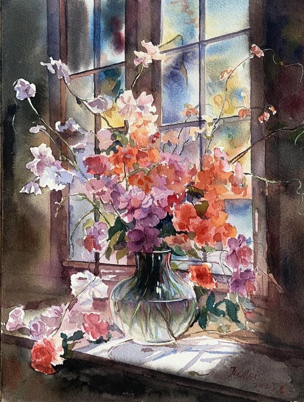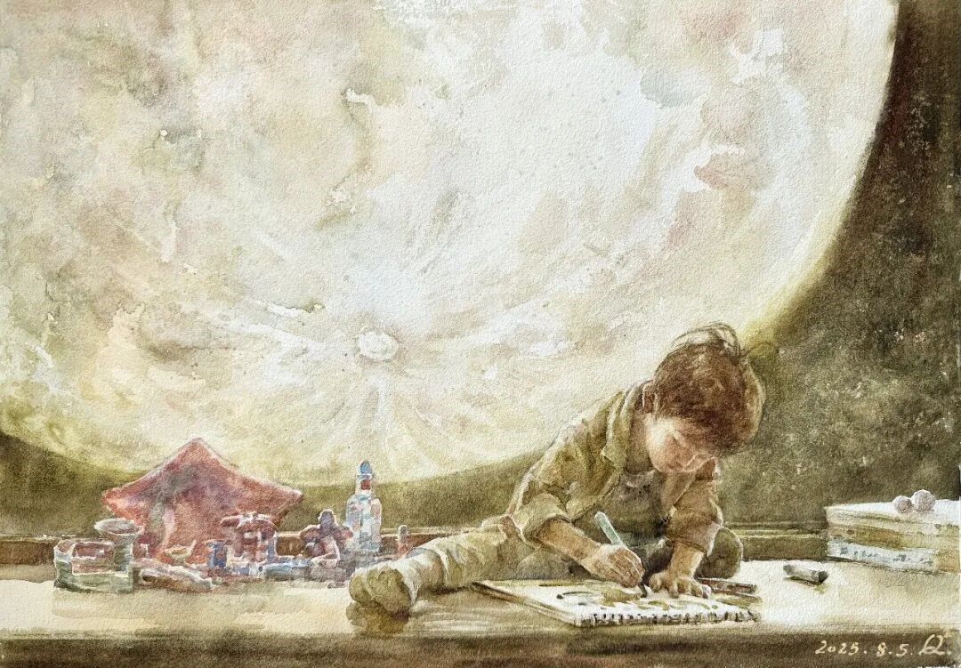 宁宇航《知守心源—中秋》水彩 120x90cm 2024