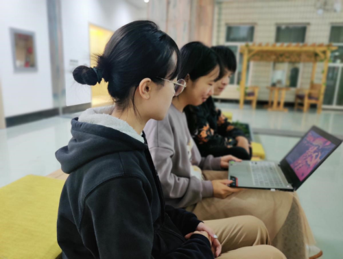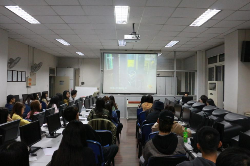 党员同志们在服装楼三楼机房学习观看《榜样4》