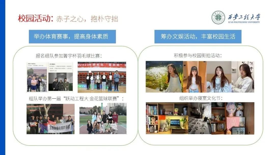 为发挥引领作用,增强青年凝聚力,姜敏乐保持刻苦学习、锐意进取的精神,积极参加各类专业赛事。目前已带领干事开展各类学习经验分享会,致力于培养优良学风。