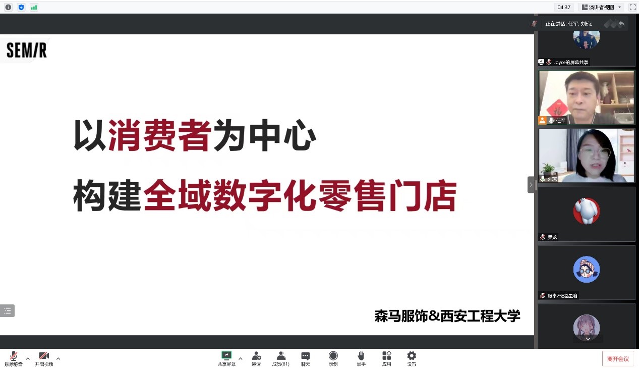 2022年12月14日晚,服装工程系邀请森马集团公司销售系统西安子公司总经理王青云女士我院师生做了数字化零售发展的线上讲座,讲座由服装工程系任军老师主持,服装工程系教师和专业相关的同学一百余人参加了会议。