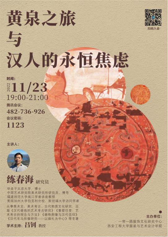 11月23日晚,围绕艺术考古研究方向,我院邀请中国艺术研究院美术研究所研究员、博导练春海研究员为师生们带来题为“黄泉之旅与汉人的永恒焦虑”的学术讲座。本场精彩的学术分享,会议由院长吕钊教授主持,与会师生完成了长达两个多小时的讲授与互动,让大家重新认识了艺术考古研究的深度与广度。