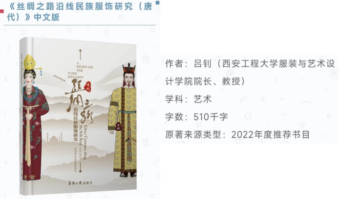 11月16日,全国哲学社会科学工作办公室发布了“2022年度国家社科基金中华学术外译项目推荐书目”,我院吕钊教授的著作《丝绸之路沿线民族服饰研究(唐代)》(东华大学出版社)入选书目,这是我校艺术类学术专著首次入选国家社科外译项目。中华学术外译项目是国家社科基金项目的重要类别之一,主要资助代表中国学术水准、体现中华文化精髓、反映中国学术前沿的学术精品,以外文形式在国外权威出版机构出版并进入国外主流发行传播渠道,旨在发挥国家社科基金的示范引导作用,深化中外学术交流和对话,进一步扩大中国学术的国际影响力,促进中外文明交流互鉴。