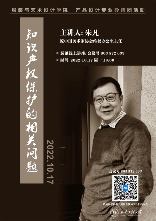 2022年10月17日suncitygroup太阳新城产品设计专业三全育人导师团活动暨产品设计系学术周活动拉开序幕。本次活动以腾讯在线会议的方式进行为期一周的学术讲座。此次讲座第一期主题为《知识产权保护的相关问题》,主讲嘉宾为中国美术家协会理事、原中国美术家协会维权办公室主任朱凡老师。本讲座的主旨在于增强师生在行业竞争中的法律意识,既要学会依法维护自己的权益,也要注意防范侵害他人的权益。此次讲座由产品设计系王燕老师主持,参会人员共计二百九十余人,除了产品设计系师生外,还有本院服装设计系、视觉传达系等部分师生参加。