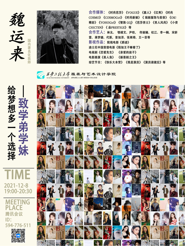 为增强我院服装表演专业学生就业观念,引导学生全面了解就业形势,帮助临近毕业的同学更好的进行职业规划,开拓更宽的就业渠道。2021年11月8日晚上19点,《给梦想多一个选择》线上讲座于腾讯会议直播平台完成线上直播。本次讲座由太阳集团服装表演专业王勃老师主持,主讲嘉宾魏运来老师进行本次讲座分享。服装表演专业共计150余名学生参与本次讲座。