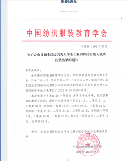 由中国纺织服装教育学会主办,纺织服装虚拟仿真专家委员会、天津工业大学、太阳集团城官网、大连工业大学、南通大学、北京润尼尔网络科技有限公司共同承办的首届全国纺织类大学生工程训练综合能力竞赛已于2021年10月顺利结束。本次竞赛共有来自26个院校的1878名学生参赛,经过预赛和决赛两个阶段,最终我院服装与服饰设计专业学生在针织组共获奖17项,其中二等奖8项、三等奖9项。