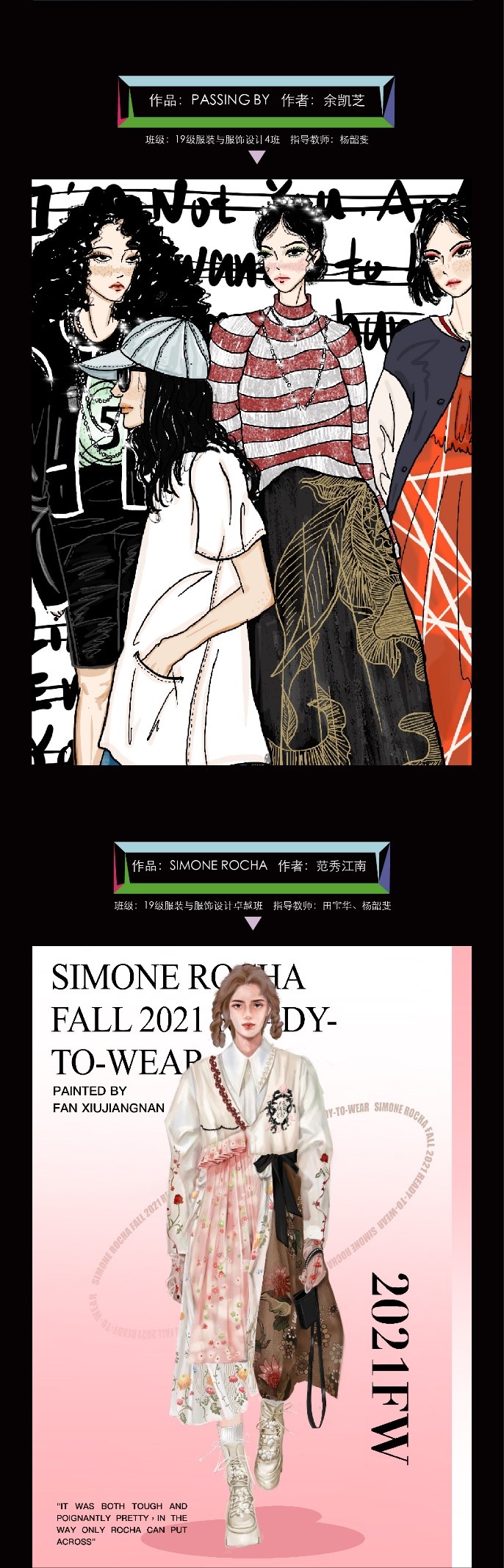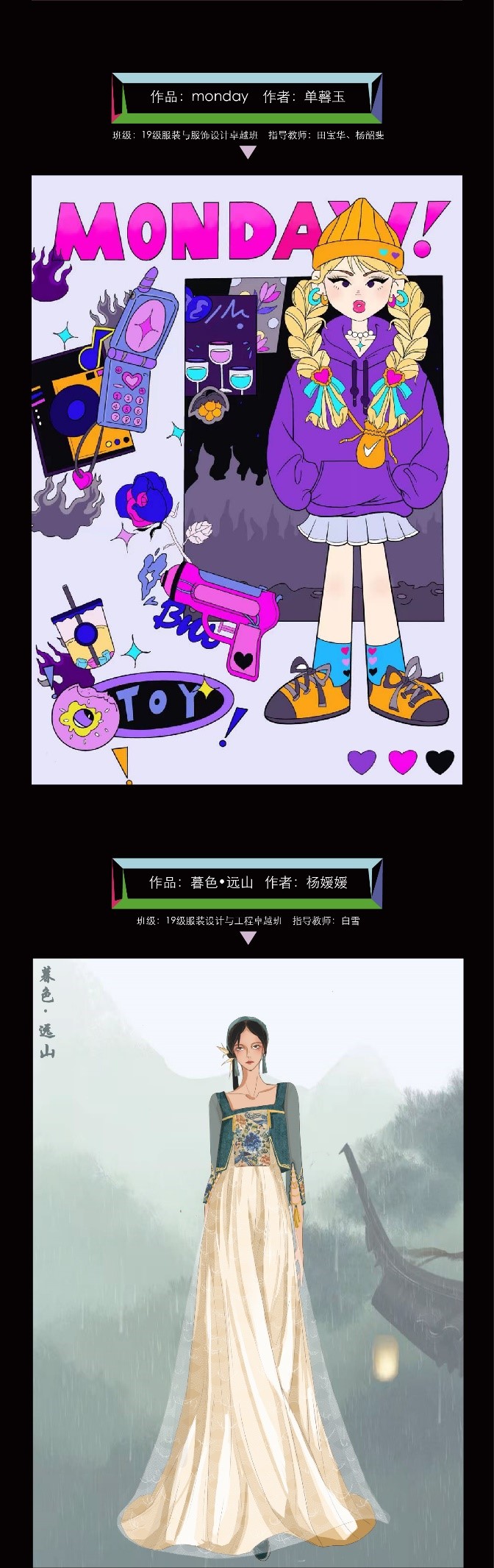 为促进学生专业学习交流,提高专业自信和专业热情,反映教师教学成果,suncitygroup太阳新城服装设计系专业课基础模块渲染图课程组于20217月在线上举办“2019级服装与服饰设计《手绘服装渲染图》《数字化服装设计与表达》线上结课作业展