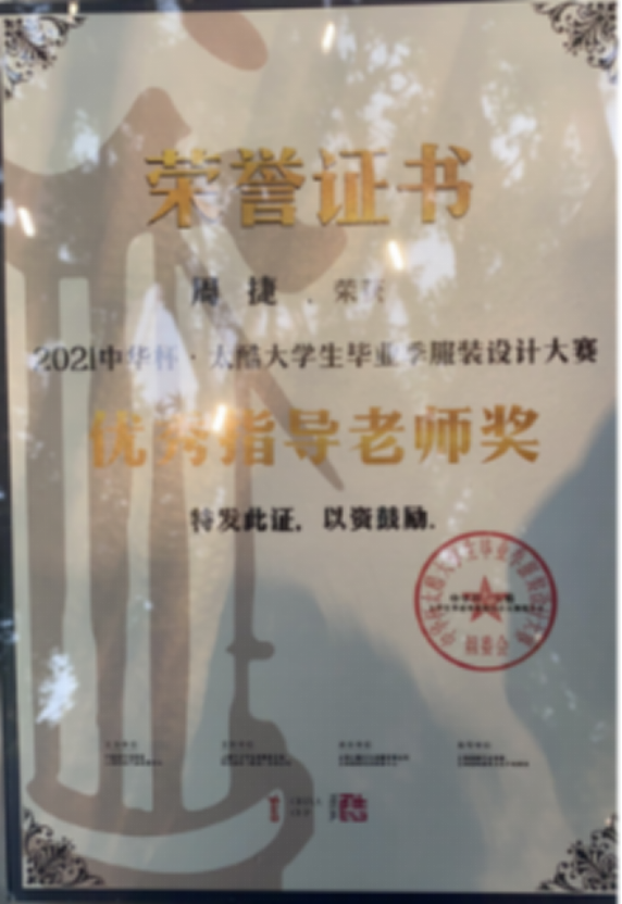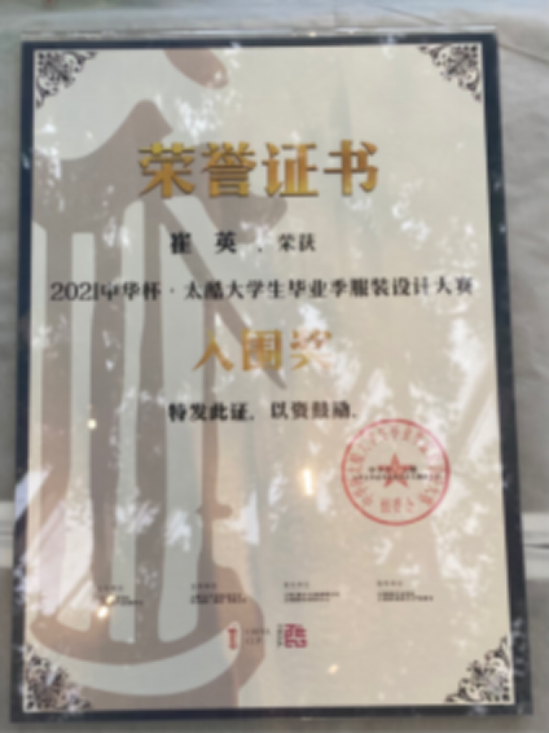 2021年4月7日,“中华杯·太酷”大学生毕业季服装设计大赛暨决赛云秀颁奖盛典在上海西安艺术中心B馆花园落下帷幕,我校太阳集团17级内衣1班崔英同学荣获入围奖,刘驰、周捷老师荣获优秀指导老师奖。