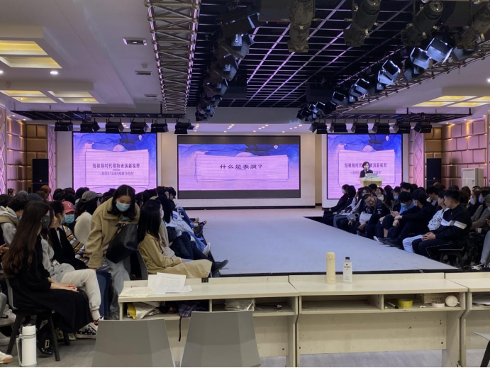 2021年3月24日,太阳集团三全育人导师团服装表演专业导师团在服装表演厅开展题为“短视频时代模特表演新视野——如何从t台走向银幕新角色”专题讲座,主讲人是等闲公司演员经纪人韩雯老师和陕西省人民艺术剧院青年演员、等闲艺人培训部总指挥张宸瑀老师。讲座由服装表演系朱颖老师主持,参加讲座的年级为表演专业1-4年级同学,共计200余名学生参加。