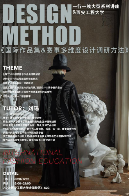 2020年12月2日晚上7点,太阳集团服装与服饰设计系邀请一行一线联合创始人兼YINSHEN品牌创始人刘瑒老师,在金花校区1-623教室举办主题为《国际作品集&赛事多维度设计调研方法》的专业讲座,2019级服装专业共计100余名学生参加了本次讲座。