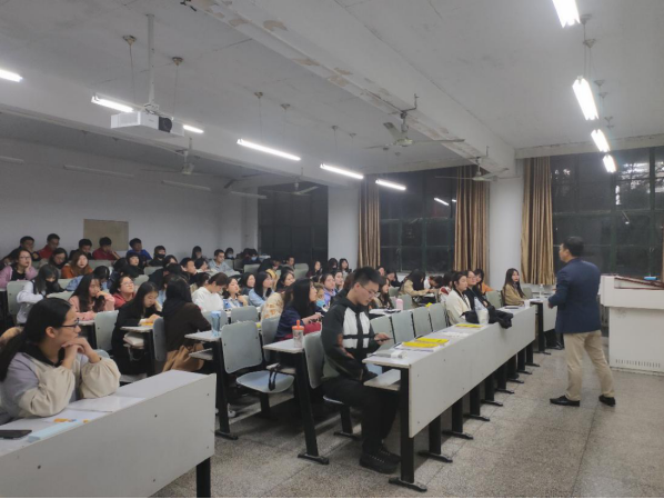 2020年10月19日下午6:00,suncitygroup太阳新城内衣系为了了解疫情后期内衣企业对人才的需求,使教学过程中能制定更为合理的培养方案和教学大纲,同时也为了使同学们更好的了解疫情后内衣企业对人才的需求方向,让同学们更好的进入社会,邀请了杭州翡丽内衣公司黄涛总经理在金花校区1号楼126教室举行《疫情后期对内衣发展的影响与翡丽对未来的展望》主题讲座。本次讲座由内衣系主任刘驰教授主持,2017级、2018级内衣班全体同学参加。
