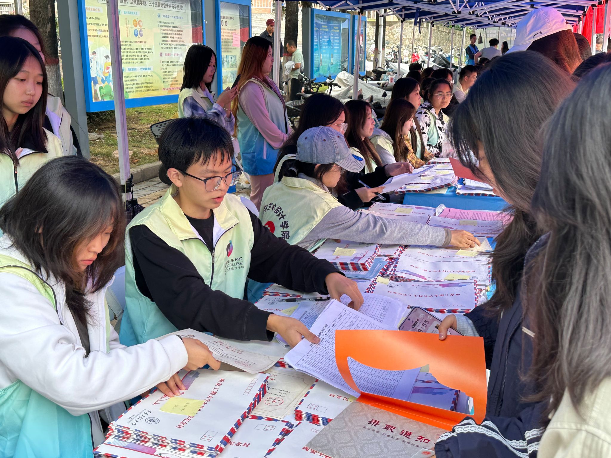 (校院领导慰问新生、志愿者引导新生办理入学手续)